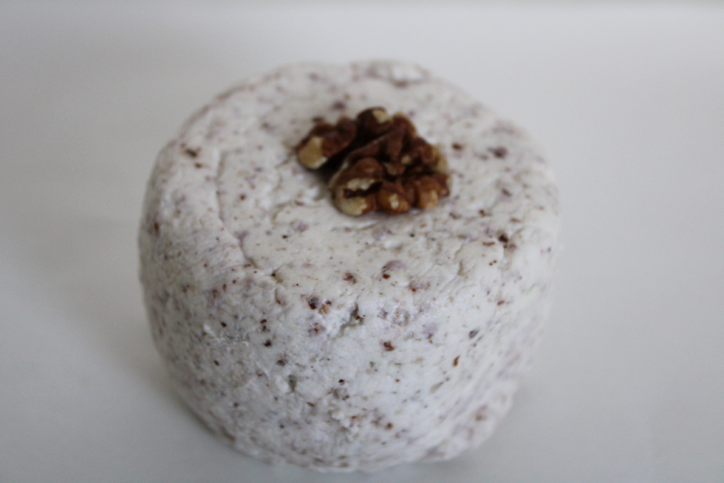 Lait cru de vache, sel noix.