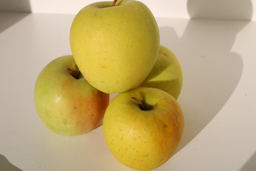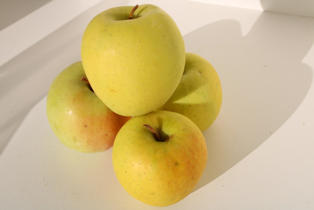 Pomme golden avec une chair juteuse, croquante, sucrée et douce.